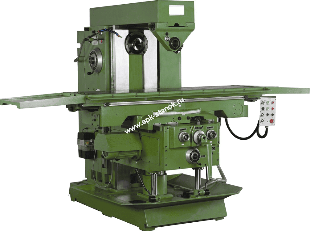 Горизонтально-фрезерный станок X6150 предназначен обработки плоскостей, уступов, фрезеровки канавок и пазов различных видов при помощи цилиндрических, угловых, концевых, фасонных, сферических фрез. Рабочий стол, имеющий функцию поворота относительно вертикальной оси на 45° по часовой и против хода часовой стрелки позволяет с применением универсальной делительной головки нарезать винтовые и червячные профили. Высокая мощность и усиленная конструкция позволяют обрабатывать изделия с высокой производительностью этому способствуют ускоренные перемещения рабочего стола в поперечном, продольном и вертикальном направлении. На станке предусмотрена функция механического зажима по осям, что придает дополнительную жесткость на ударные нагрузки, возникающие при обработке деталей. Основные узлы выполнены из высокопрочных сплавов.